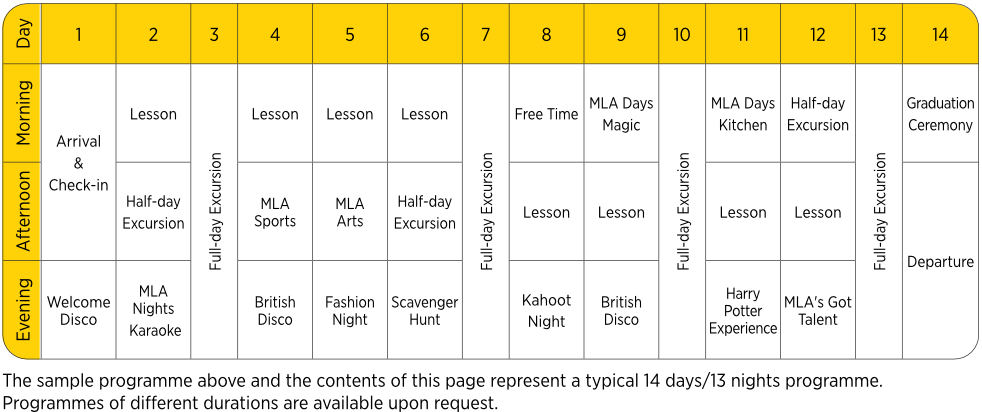 Four full-day excursions by private bus and support of MLA local staff