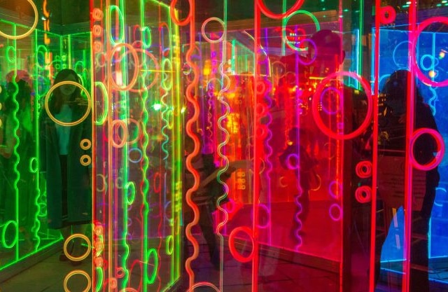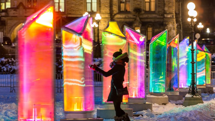 Sono 21 le opere disseminate per tutto il quartiere che includono isole galleggianti, un palazzo di ghiaccio e un gioco interattivo da nastri luminescenti.